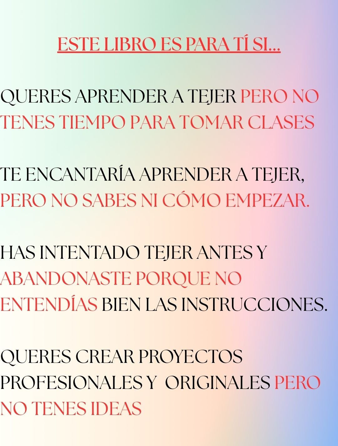 Porque el Ebook está 100% diseñado para que aprendas desde cero con el paso a paso preciso para cada diseño, sin trucos y sin vueltas.